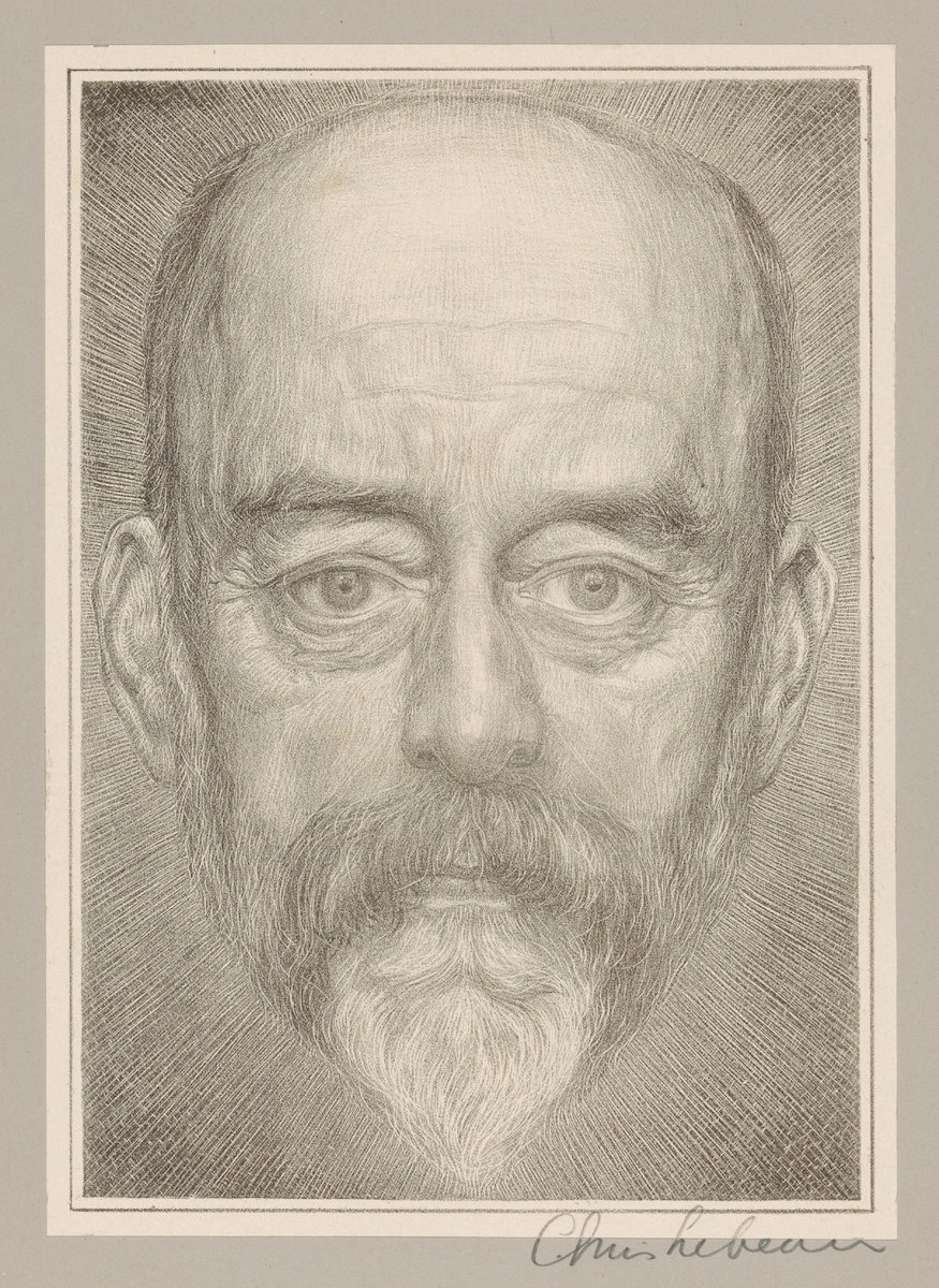 Hier vliegt de kunstrecensent naar mijn mening uit de bocht, want nu geeft hij zelf toe dat ook Lebeau zijn ‘geestelijke visie’ in zijn portrettekeningen legt. En wie Lebeau’s gehele oeuvre kent, weet dat hij ook veel religieus getinte portrettekeningen heeft gemaakt. Vooral bevriende kunstenaars of andere mensen die hij bewonderde werden door Lebeau vaak op een verheven wijze afgebeeld, waarbij het hoofd van de geportretteerde soms in de lucht lijkt te zweven, zie bijvoorbeeld bijgaande portrettekening van architect H.P. Berlage. Dit had te maken met Lebeau’s theosofische levenshouding en zijn opleiding aan de Vahana-tekenschool van Lauweriks en De Bazel, waar op theosofische basis werd lesgegeven.